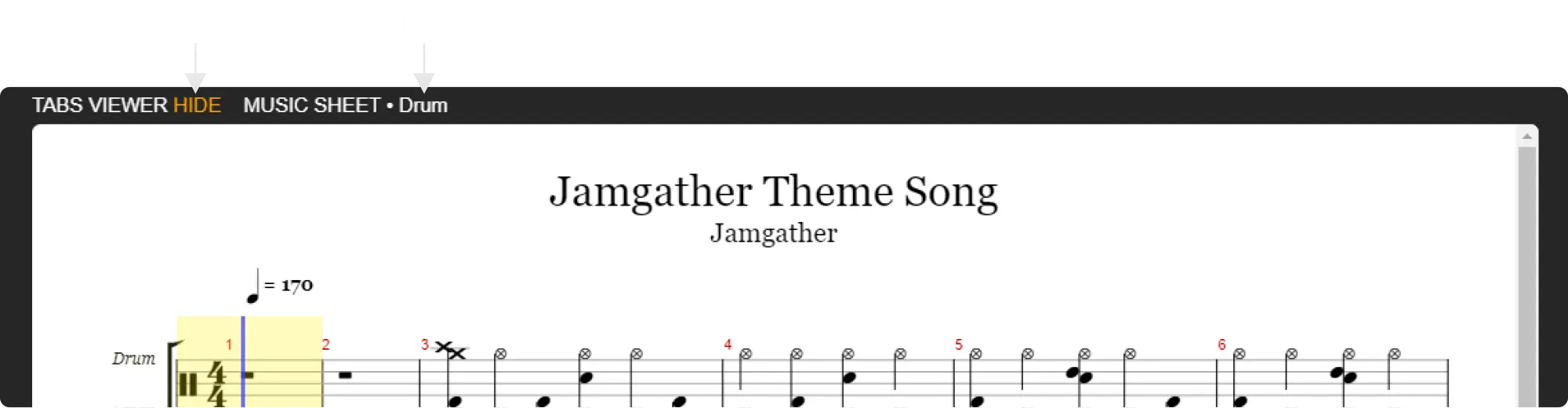 All TABS will automatically generate music sheets when entering the PROJECT MIXER. Item "2" corresponds to the existing MIDI TRACK music sheet. If you don't need to use it, you can also hide it in item "1".
