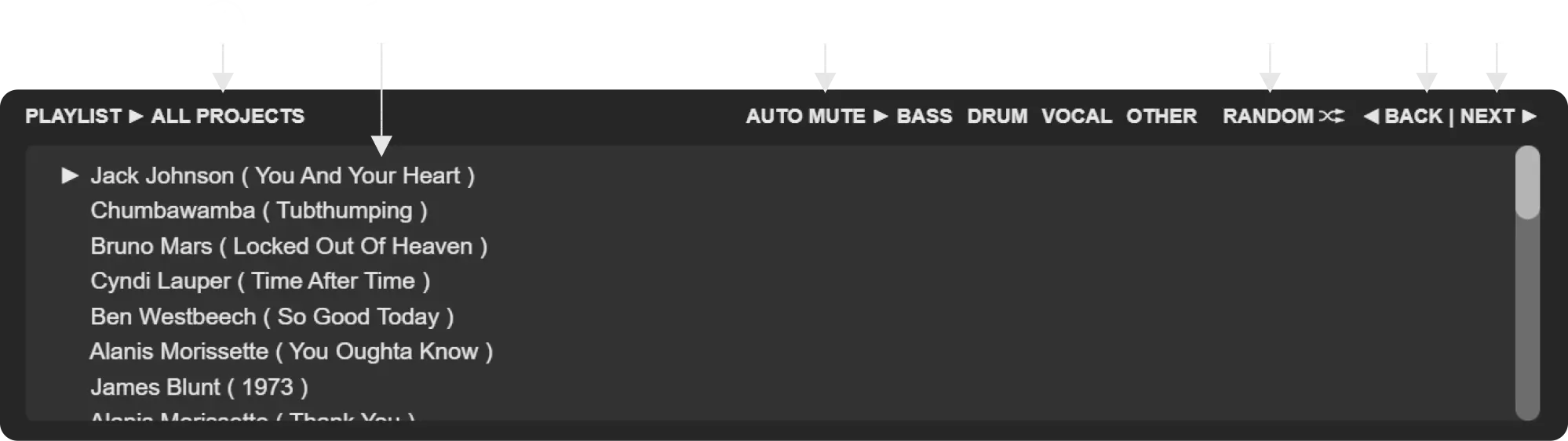 - PLAYING SONG TITLE - Projects or sound separate projects.
